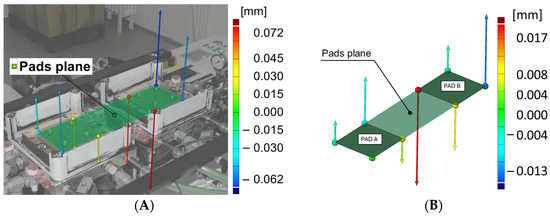 (A) Measurement setup of OCMM method; (B) final iteration–measured deviations.