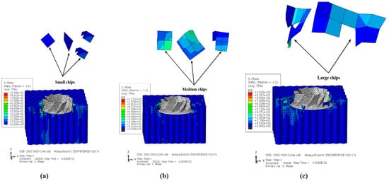 Resulting chip size of the diameter-cutting blade [94]: (a) D = 16.3 mm; (b) D = 18.3 mm; (c) D = 19.3 mm.