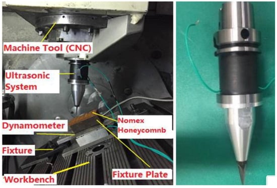 - Fujian, M.A.; Jifan, W.; Shengfang, Z. Analysis of the effect of tool parameters on ultrasonic cutting performance of Nomex honeycomb cores. Chin. J. Constr. Mach. 2016, 14, 316–322. [Google Scholar]
