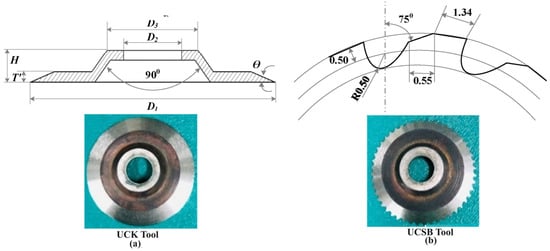 Cutting tool used to cut the Nomex honeycomb composite core: (a) UCK cutting tool; (b) UCSB cutting tool [189].