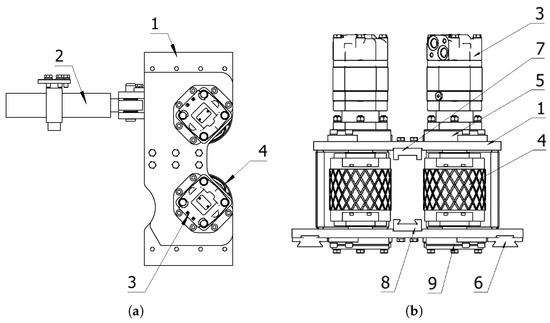 Figure 2d shows the parallel clamping structure with double hydraulic cylinders, which adopts the clamping form to clamp the drilling tools. This form’s clamping force is larger than those of the other structures, with good alignment.