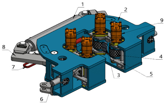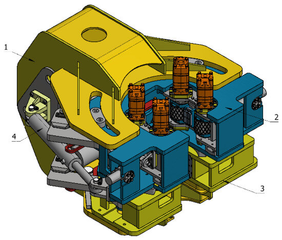 Figure 5d shows the single-hydraulic-cylinder drive’s linkage, which, compared with the double-hydraulic-cylinder drive, occupies a relatively small space, in addition to its other advantages.