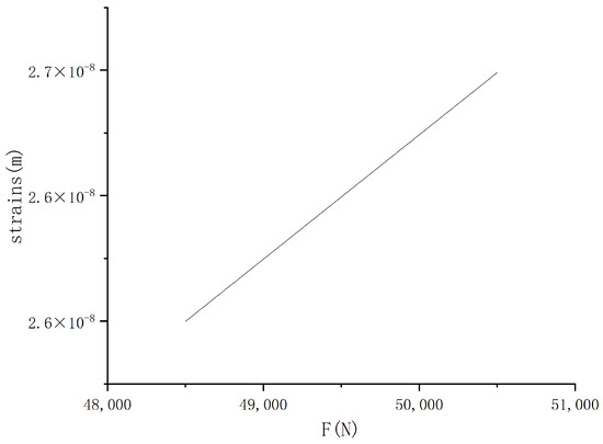 This is used to make a contact strain, as seen in Figure 13, which shows that as F increases, the strain value also becomes larger, but the overall strain value is still very small.