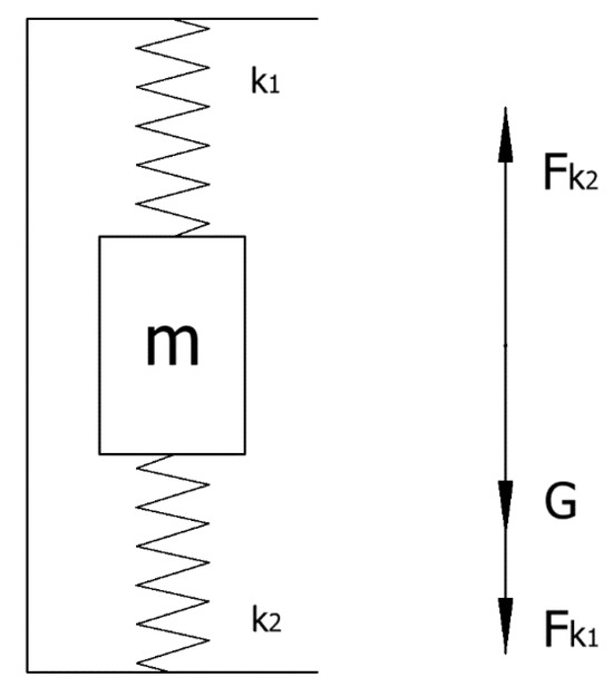 where , are the spring force of the spring , on the friction ring, and G is the friction ring by gravity. For ease of calculation, the spring names , are used to express the spring coefficient of each spring. Combined with the Equation (23), we have: