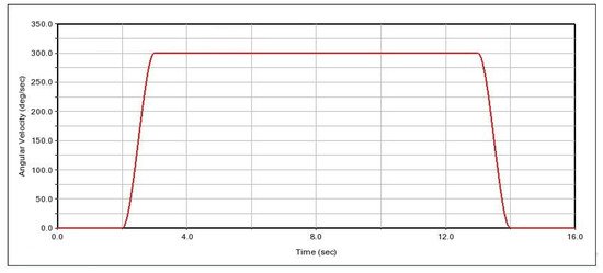 Figure 19 demonstrates the driving speed curves of the four spin buckle rollers. According to the figure, we can see that in 0∼2 s, the spin buckle roller waits for the spin buckle mechanism to hold the drilling tool, and the rotational speed is 0 at this time; when the roller holds the drilling tool, the roller starts to rotate, and the rotational speed grows from 0 to 300 deg/s (50/min) in 1 s; in the following 10 s, the spin buckle roller maintains this rotational speed to carry out spinning work; in 13 s, the spin buckle roller starts to slow down; in 14 s, the speed returns to zero, and the spinning action is completed, waiting for the piston rod to be retracted; in 16 s, the mechanism is reset, and the simulation experiment is finished.
