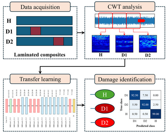 - Rai, A.; Mitra, M. A Transfer Learning Approach for Damage Diagnosis in Composite Laminated Plate Using Lamb Waves. Smart Mater. Struct. 2022, 31, 065002. [Google Scholar] [CrossRef]