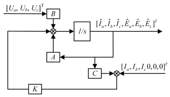 The structure of the observer could be seen in Figure 6. Based on the above analysis and considering the impact of the back EMF on the torque ripple suppression conditions of the brushless DC motor as stated in Equation (10), using the back-EMF constant to calculate the back EMF can lead to calculation errors due to the neglect of the system’s nonlinear effects, which in turn affects the results from Equation (10). Therefore, to enhance the suppression effect on the torque ripple in the brushless DC motor, this paper designs a back-EMF observer for the brushless DC motor and proves its stability.