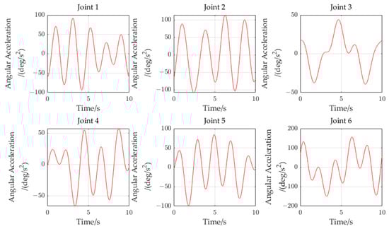 Based on Equation (15), the joint angular acceleration is obtained by using angular velocity, as shown in Figure 13.