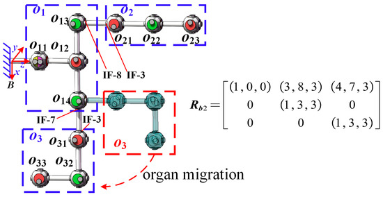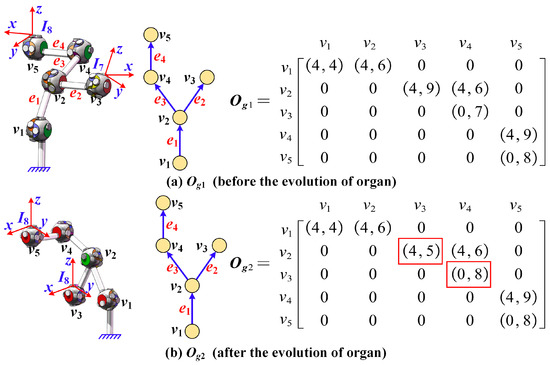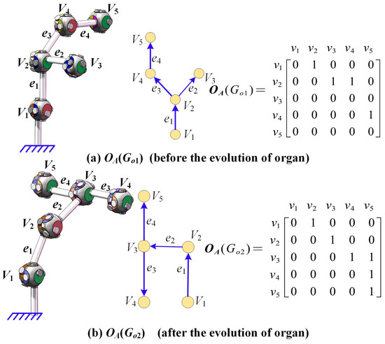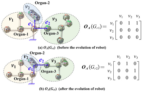 - The is used to denote the entry of the CSR’s robot assembly matrix , the represents the assembly relationship of organ-i when the CSR organ- points to organ-j along the directed graph pathway;