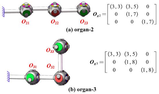 | Input: The organ assembly matrix , the rotation angle of modules ; Output: The pose of the output interface coordinate system of the end-of-organ module relative to the base coordinate system , ; Matrix of the output coordinate system of the modules of the organ, .