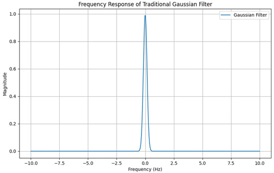 Figure 5B presents the frequency response of the Variable-Step Gaussian-Sinusoidal Filter. Compared to the fixed-step filter, the frequency response of the VSGF is smoother and broader, indicating good responsiveness over a wider range of frequencies. This enables it to more effectively remove noise while preserving the primary frequency components of the signal.