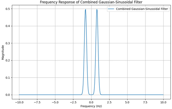 For the Gaussian-Sinusoidal filter, we consider the frequency response of the combined function: