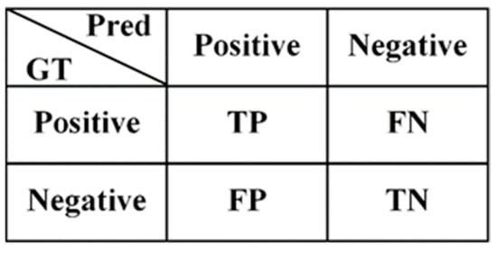 Definition of TP, FP, and FN, where GT denotes the ground truth pixel annotation, while Pred indicates the predicted segmentation map.
