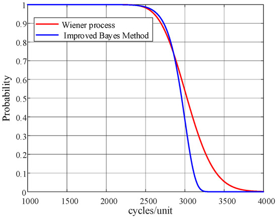 Based on the above equation, the dependability curve of the Hall current sensor under normal temperature and humidity stress levels can be acquired. Since it is difficult to verify the reliability prediction results of the improved Bayes method using actual service life information, this paper chooses to use the Wiener stochastic process model to validate the effectiveness of the proposed improved Bayes method.