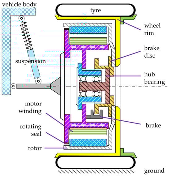 - Satoshi, M. Innovation by in-wheel-motor drive unit. Veh. Syst. Dyn. 2012, 50, 807–830. [Google Scholar]