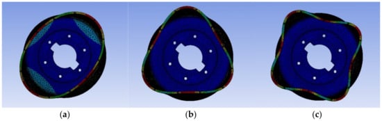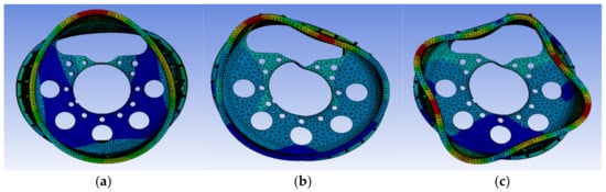 In terms of structural dynamic characteristics, the modal properties of key structural elements are crucial due to their natural vibration characteristics. These modal properties play a significant role in the overall vibration transmission and the time–frequency-domain vibration response of the system. For research purposes, the bearing unit is simplified as a rigid element connecting the stator and rotor. This section primarily focuses on the modal characteristics of stator and rotor.