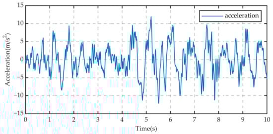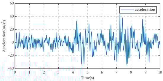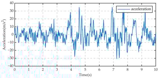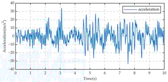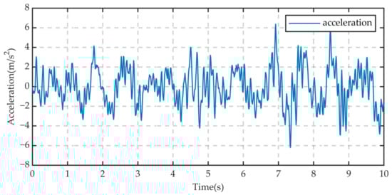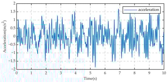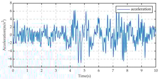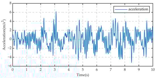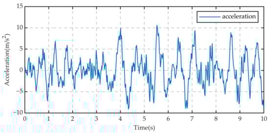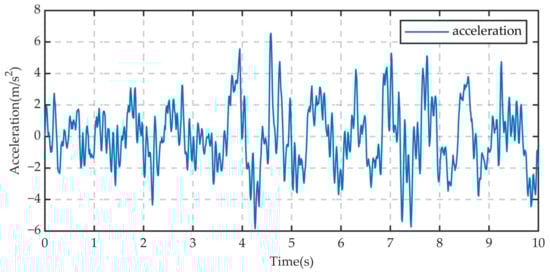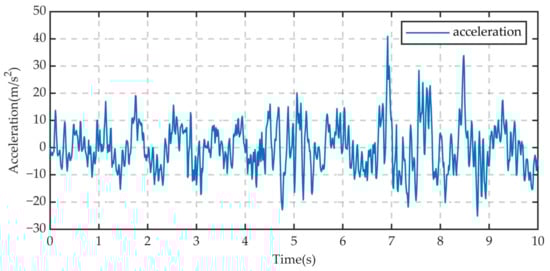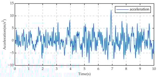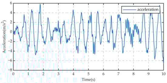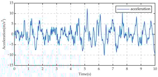 Acceleration–time curve of the car body’s right rear at 10 m/s on the E-class road.