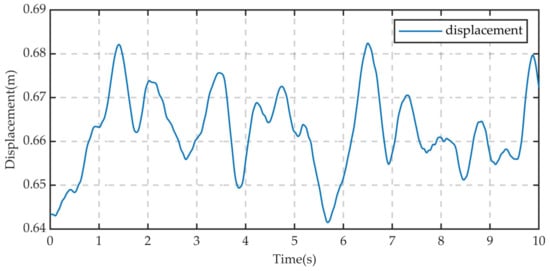 The tire system is dynamically modeled in the same way. It is equivalent to a mass-spring–damper system. The results are shown in Figure 5. The rim and tire are constructed as rigid components. Their interactions with the ground are constructed as an equivalent 3-DOF (degree of freedom) spring–damper in order to characterize the elastic action of the tire in different directions.