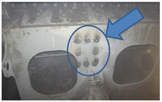 The procedure for the application of the strain gauges began with the determination and marking of the measuring point positions. Consequently, the segment was pre-prepared for fixation of the waterproof boxes by welding eight fixing points (Figure 9) necessary for each measuring point.
