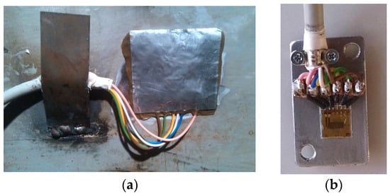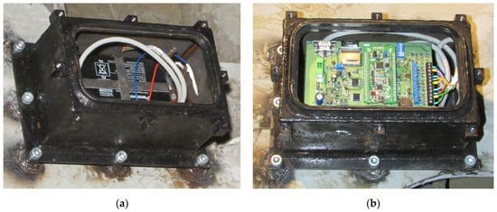 Installed box with battery: (a) Without measuring electronics; (b) With connected measuring electronics.