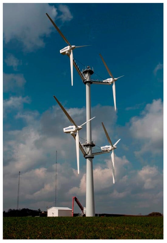 Figure 6 shows a multirotor wind turbine built and tested by Vestas as part of the review performed for future emerging technologies in the wind power sector [