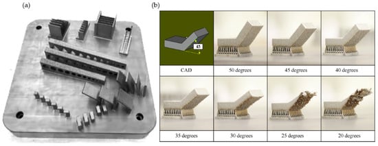 Figure 8b, we can observe the results at various overhang angle values. Considering design for additive manufacturing while developing a structural optimization strategy centered on the use of generative design techniques is an efficient approach that can lead to the generation of complicated designs. An example of the design for additive manufacturing is shown in