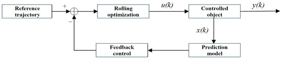 The model predictive control mechanism is shown in Figure 6, which can be roughly summarized as follows: at the current sampling moment, solve an open-loop optimization problem within the prediction step according to the current moment state and the prediction model; next, apply the first element in the optimization output to the controlled object, and at the next sampling moment, use the new actual state quantity as the initial condition and repeat the above steps until the end of the problem. Model predictive control consists of three important components: predictive modeling, rolling optimization and feedback correction.
