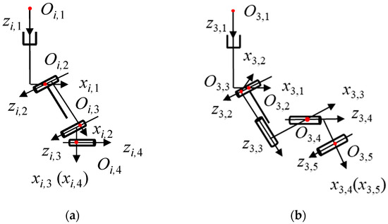 Local coordinate systems of individual limbs: (a) the PRU limb; (b) the PRS limb.