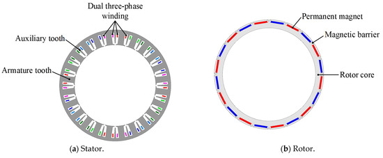 Topology of proposed PMSM. (a) Stator. (b) Rotor.