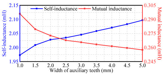 Variation of self-inductance and mutual inductance with width of auxiliary teeth.