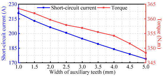 Variation of short-circuit current and torque with width of auxiliary teeth.