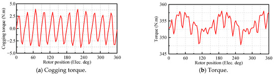 Torque performance of PMSM. (a) Cogging torque. (b) Torque.