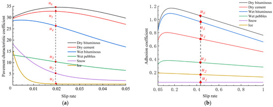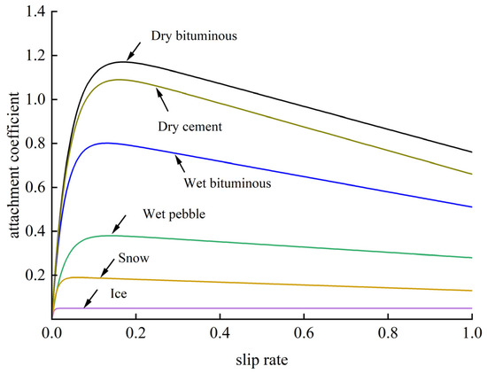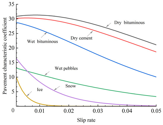 Therefore, the curves corresponding to different pavements are different, which is the inherent characteristic of each pavement. Furthermore, the points on each pavement curve can represent the adhesion characteristics of the pavement, which can be used as an essential basis for pavement identification.