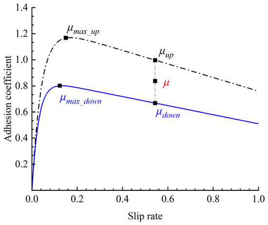 As illustrated in Figure 3, when the utilization coefficient of the friction point of an unknown road surface lies within the curves of two typical road surface adhesion coefficients, it can be determined that the peak adhesion coefficient of this road surface also falls between the peak adhesion coefficients of the two adjacent surfaces.