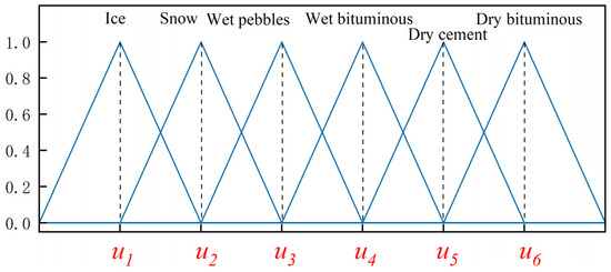 where , , and are the peak adhesion coefficients of the pavement to be identified and the two adjacent pavements, respectively. , , and are the utilization adhesion coefficients of the pavement to be identified and the two adjacent pavements, respectively.