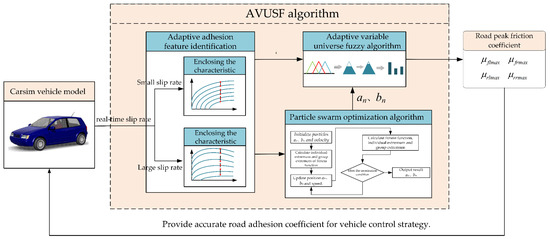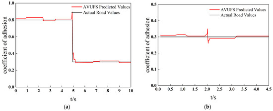 Adhesion Coefficient Estimation Based on the Adaptive Variable Universe Fuzzy Algorithm: This algorithm improves the traditional fixed-form membership function by introducing a time-varying membership function, which accounts for the dynamic relationship between the tire and road adhesion coefficients. The membership function is continuously updated based on the vehicle’s driving status, ensuring it remains within the optimal estimation range, thus enhancing the algorithm’s adaptability and estimation accuracy. Experimental results show that, for both high and low slip ratio stages, the overall estimation deviation remains stable within 0.02, with minimal dependence on initial values. However, some fluctuations may occur during the prediction process under certain conditions, which requires further research to reduce these inconsistencies.