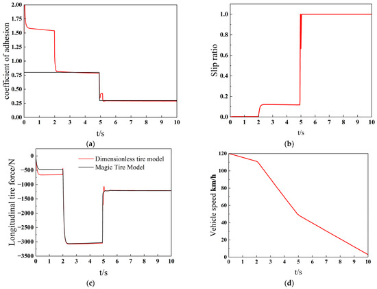 In the tire model, the tire force from a typical road surface is sufficient to achieve characteristics that closely approximate those of the Magic Tire model. This parameter has good adaptability and predictability for complex and changeable road conditions and is of great importance in the active control of vehicle safety.