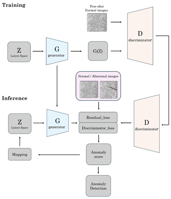 Fundamental differences from existing GAN-Based approches: Existing GAN-based anomaly detection models, such as AnoGAN or BiGAN, primarily focus on utilizing normal data to learn generative patterns. However, FS-GAN advances beyond these models by incorporating few-shot learning to optimize performance in data-scarce conditions. This dual approach not only improves learning efficiency but also significantly enhances real-time detection capabilities, allowing manufacturers to respond rapidly to anomalies without requiring extensive labeled datasets.