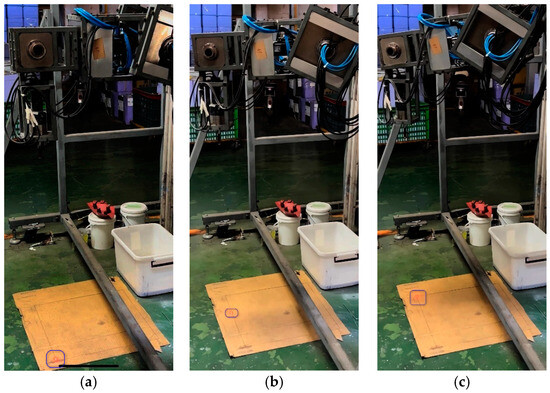 The robotic arm performs experiments using the joint angles based on previously simulated spray-coating paths, such as rectangular, circular, and motorcycle shell trajectories. A projector can be installed on the robotic arm’s end effector to project light onto the planned path. During the motion process, the three-dimensional path values in the Cartesian coordinate system cannot be directly measured. However, the joint angles of the seven axes can be fed back and used to compute the corresponding path values in the Cartesian coordinate system via forward kinematics. These calculated values are then compared with the initially planned path to assess the accuracy of the robotic arm’s control. When the robotic arm executes a 50 cm rectangular trajectory, as shown in Figure 13, the projected light accurately follows the planned path. Similarly, when the robotic arm performs a 40 cm circular trajectory, as shown in Figure 14, the projected light also accurately follows the planned path.