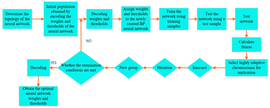 In this scenario, the multiple and non-linear optimization objectives necessitate the use of genetic algorithms to determine the optimal network weights and thresholds, which serve as the initial values for the subsequent neural network model. This fixes the problem with regular BP neural networks, that they can reach local minima, and it also makes model evaluation a lot more accurate.