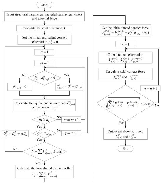 Since the contact stiffness of the thread teeth varies with contact deformation, an iterative method is used to solve the above nonlinear equations. The specific procedure is as follows: