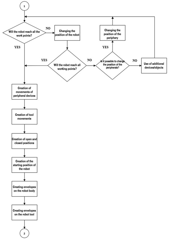 The fourth step, the reachability testing of objects, ensures that the robot can access all necessary work points. Any required modifications to the robot’s position are made to achieve optimal reachability and performance.