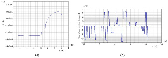 The real track geometry: (a) the longitudinal track profile; (b) the track curvature.