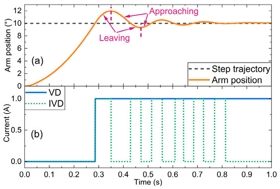 Comparison of VD and IVD control strategies. (a) arm position; (b) current signal.