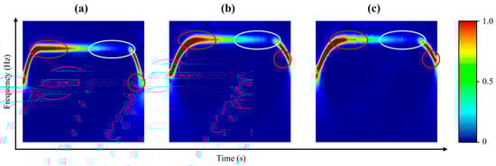 This paper presents a TL methodology for the HM of RV reducers during variable-speed operations. The methodology consists of several essential steps: (a) Obtaining operational data from the experimental apparatus; (b) Converting raw current signals into scalogram images via CWT; (c) Implementing TL models of EfficientNet, MobileNet, GoogleNet, and ResNET50v2 on these scalogram images; (d) Determining the health states of the RV reducers. Initially, current signal data were collected from the RV reducers under three specific health conditions, healthy, faulty, and faulty aged, which correspond to different speed scenarios, as shown in Figure 4. The scalograms in Figure 4, derived using the CWT, show time-frequency plots with resolution of 224 × 224 pixels. The x-axis represents time; the y-axis indicates frequency (or scale), and color intensity reflects amplitude, with warmer colors (e.g., red) indicating higher amplitudes. In Figure 4a, the scalogram for the healthy condition shows a smooth and consistent frequency distribution, indicating no faults. In Figure 4b, the faulty condition displays noticeable disturbances in the frequency distribution caused by a fault in the RV reducer. In Figure 4c, the faulty aged condition reveals pronounced disturbances and irregularities, signifying advanced degradation.