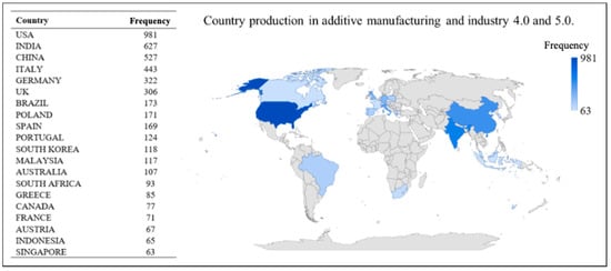 Country production in AM and Industry 4.0 and 5.0.