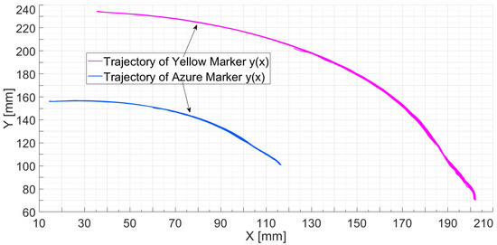 The trajectory of movement y(x) of the azure and yellow markers—dampers prototype [27].