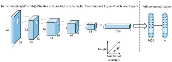 Deep Convolutional neural network (DCNN) has been widely used in fault diagnosis because of its excellent feature extraction capability and end-to-end learning framework. Therefore, this paper uses DCNN as the fault diagnosis classification model. The MCBA-MVACGAN generated fake samples and actual samples as a training set for training, and other real samples are taken as the test set and input into the classifier DCNN. First, the input training sample is convolved to reduce the size to achieve dimensionality reduction. Batch standardization is then carried out to accelerate training and reduce the risk of overfitting. Use the LeakyReLU activation function to add nonlinearity. After such an operation is carried out four times, the feature map is flattened into a one-dimensional feature vector through the fully connected layer, and fault identification is finally realized. The structure of DCNN is shown in Figure 5.