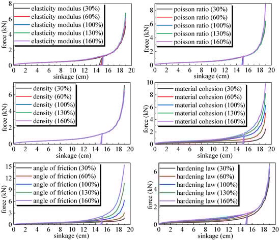 | uniaxial loading | soil [27,30] | Young’s modulus and Poisson’s ratio [27] | |
