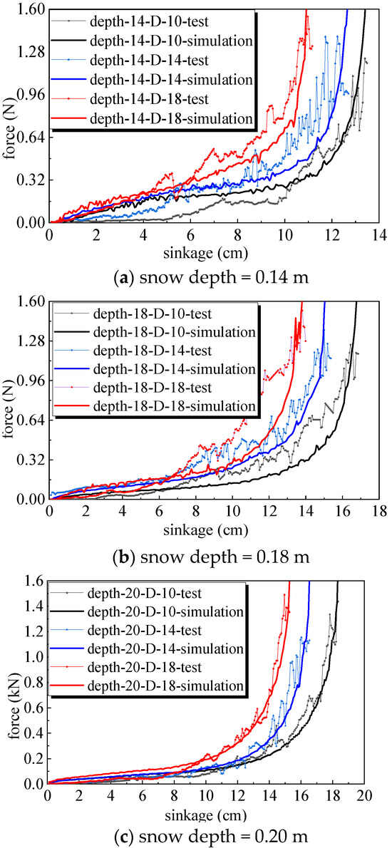 Chicago/Turabian StyleZhu, Ming, Pengyu Li, Dongqing Li, Wei Wei, Jianfeng Liu, Xixing Long, Qingkai Meng, Yongjie Shu, and Qingdong Yan. 2025. "Simulation of Load–Sinkage Relationship and Parameter Inversion of Snow Based on Coupled Eulerian–Lagrangian Method" Machines 13, no. 1: 8. https://doi.org/10.3390/machines13010008